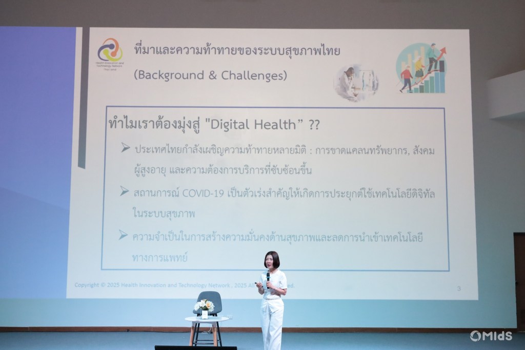 “แผนแม่บท Hub of Talent : การขับเคลื่อนนวัตกรรมและเทคโนโลยีดิจิทัลเพื่อยกระดับระบบสุขภาพไทย” วิทยากรโดย รองศาสตราจารย์ ดร.ดวงพรรณ กริชชาญชัย ผู้บริหารจัดการศูนย์รวมผู้เชี่ยวชาญด้านนวัตกรรมและเทคโนโลยีทางการแพทย์และสาธารณสุข มหาวิทยาลัยมหิดล